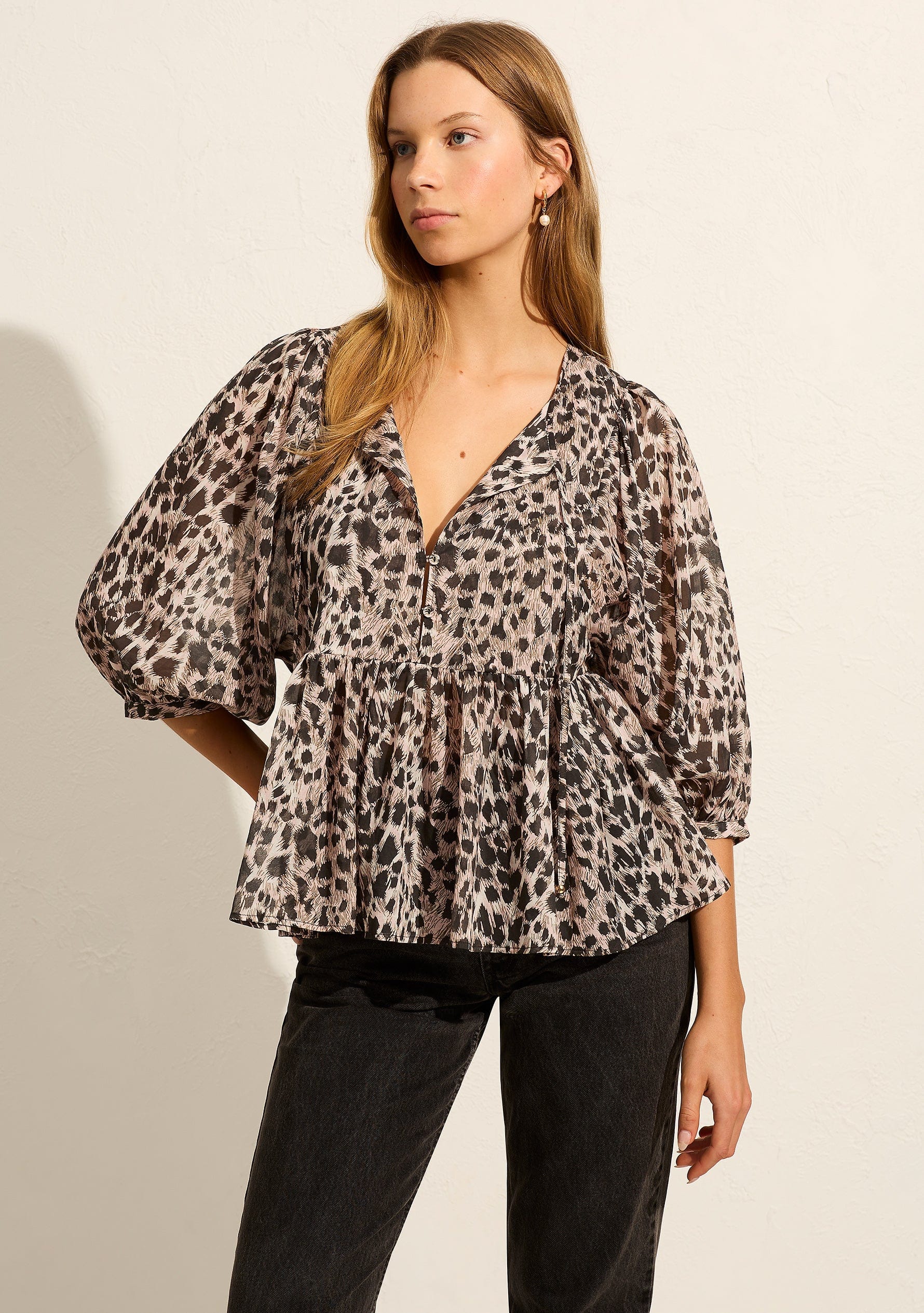 The Audrey Blouse in a classic leopard print brings a laid-back touch of Bohemian elegance. With its optional tie V-neckline, voluminous 3/4 sleeves peplum body, this 'wear on repeat' blouse is made from 100% organic cotton and is your denim's new best friend. An Auguste bestseller, available exclusively online and in-store.