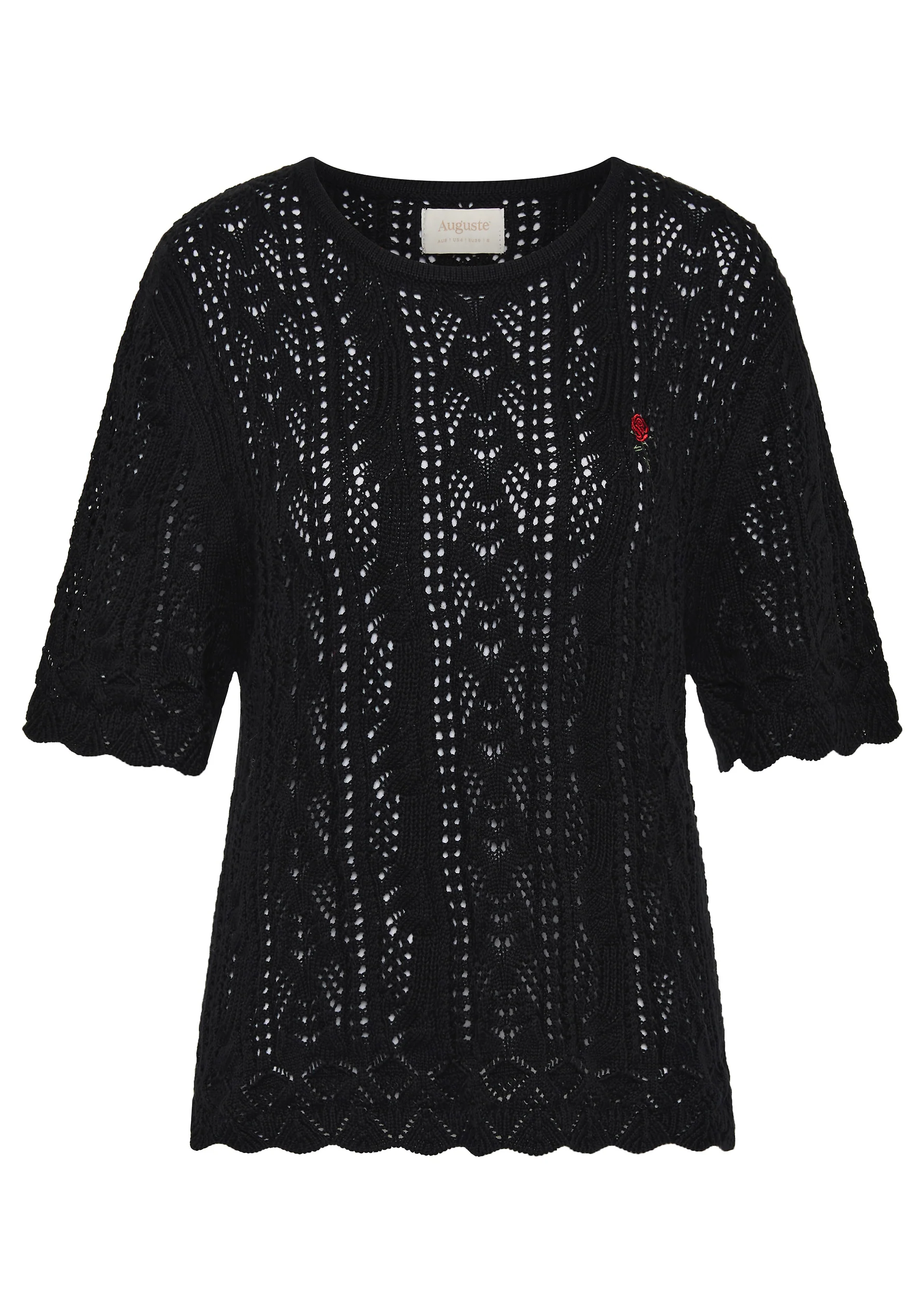 The Callen Knit Tee in black is a brand-new style, inspired by our best-selling basics and elevated with a charming embroidered rose for a feminine touch. Designed for a loose, easy fit, itβs finished with subtle detailing that enhances its timeless shape. Crafted from a soft cotton knit, it balances comfort with everyday wearability β an effortless update to a favourite silhouette.