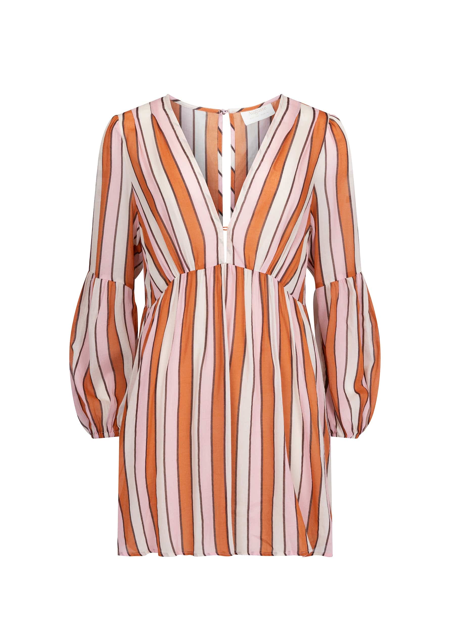 The Helena Mini Dress in our thick summery Cicely Stripe is a beloved bestseller that showcases a V-neckline with a self-covered button closure, long voluminous sleeves, and a captivating deep keyhole with buttons down the back. Designed for a relaxed fit and floaty silhouette, this dress is crafted from a lightweight cotton blend that offers a soft drape and luxurious hand feel.