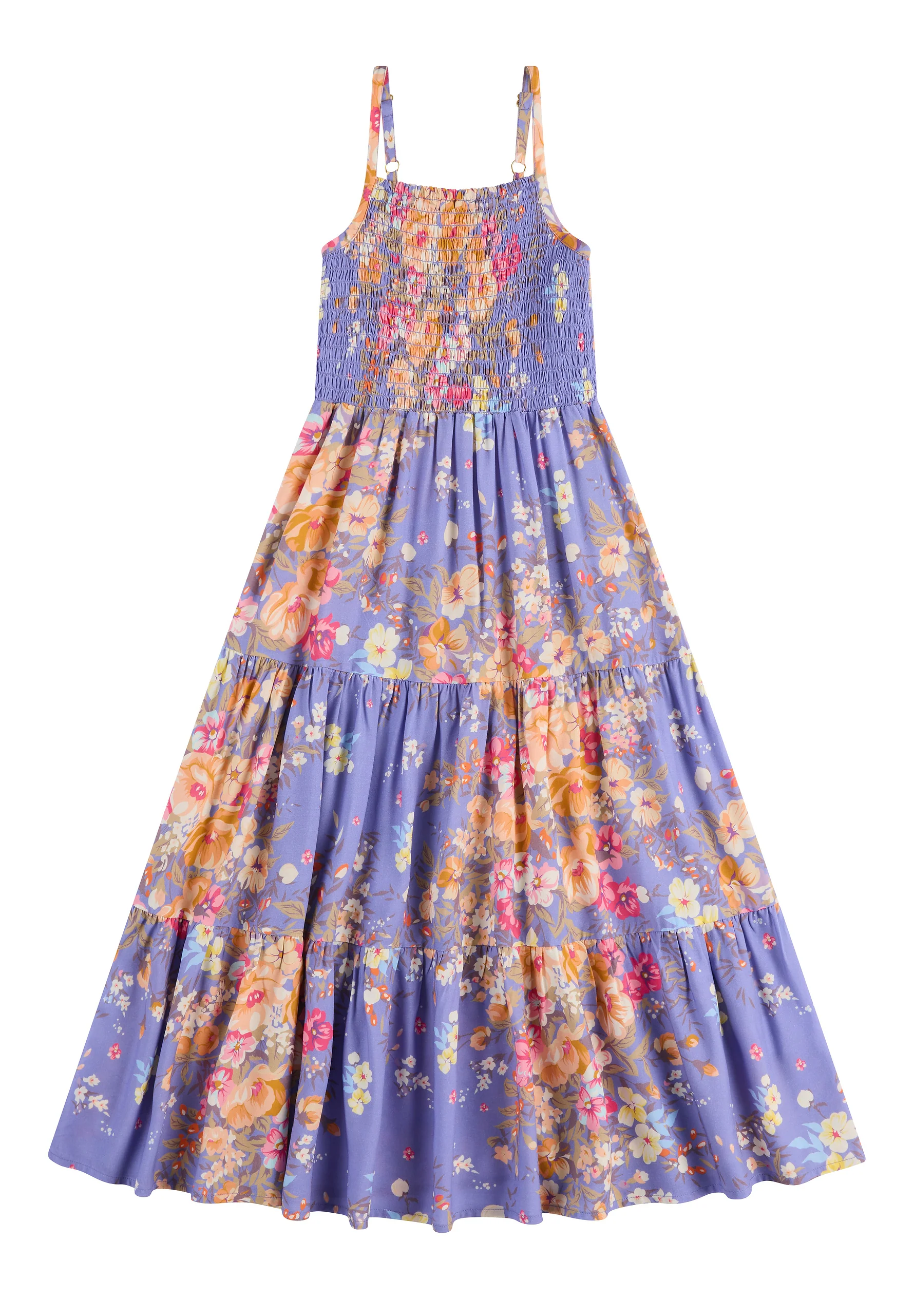 The best-selling Little Auguste Sweetheart Maxi Dress in our lavender Camelia Floral, crafted from 100% rayon, features a shirred bodice for growth, adjustable straps, and a full-volume tiered skirt perfect for twirling. Available in matching mummy-and-me styles, it’s destined to be her favourite dress — a Little Auguste bestseller, exclusively online and in-store.