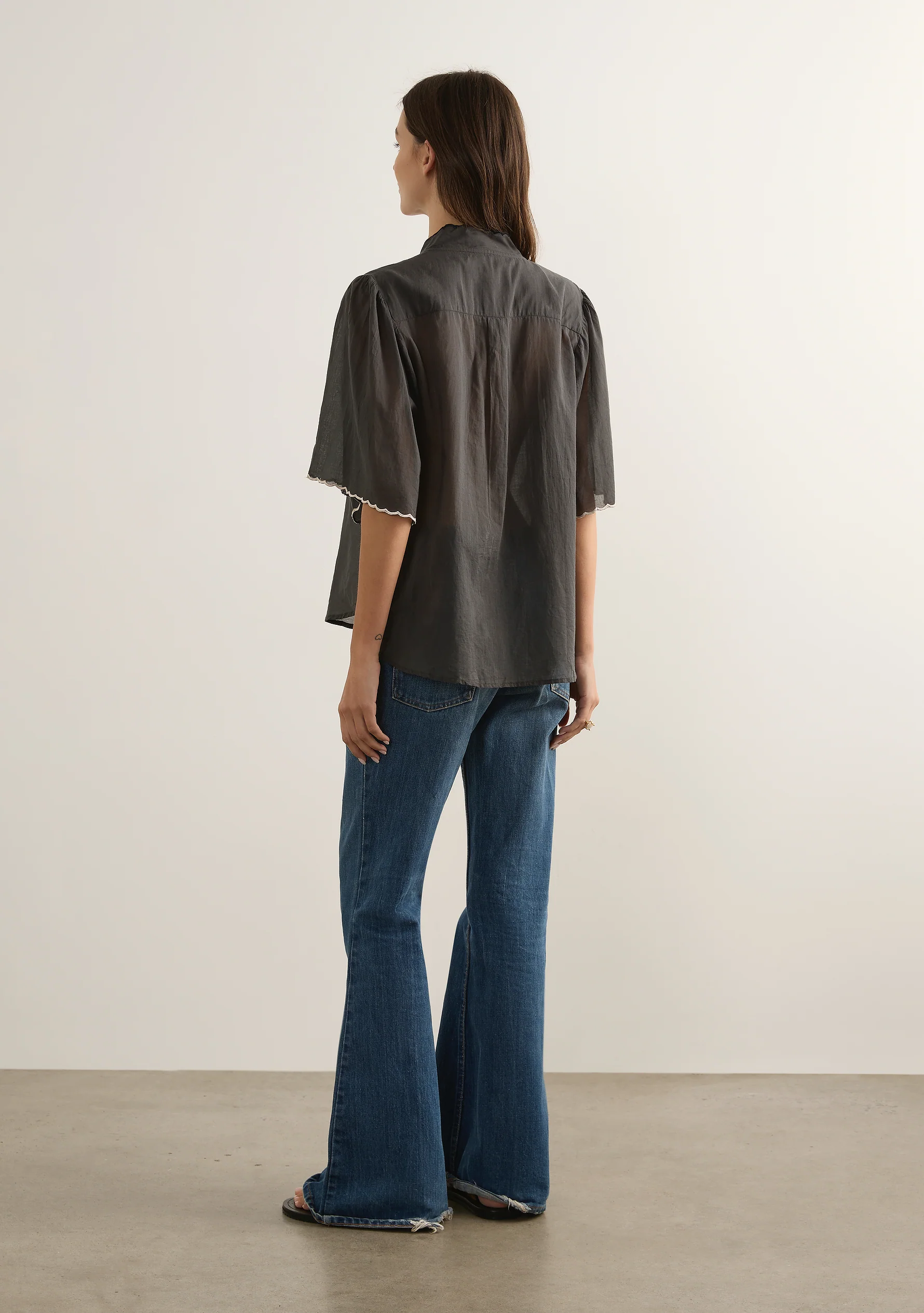 The Zoe Embroidered Blouse is an artisan masterpiece, featuring Auguste’s signature bird embroidery across the bodice and contrast scalloped edging at the neckline and sleeves. Designed with a collar stand and V neckline, it’s crafted from 100% organic cotton.
